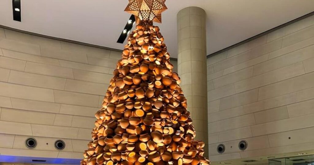 Christmas Tree Of Clay Pot: आने वाले क्रिसमस को देखते हुए दिल्ली के फेमस ले मेरिडियन होटल ने एक अनूठा पहल लेकर आया है. इस होटल में देश के स्थानीय कारीगरों द्वारा बनाए गए पके हुए मिट्टी के बर्तनों से ऐसे क्रिसमस ट्री को बनाया गया है. इस क्रिसमस ट्री को देश और विदेशी लोगों के सामने इसे प्रदर्शित किया गया. मिली जानकारी के अनुसार होटल प्रशासन बताया कि हमारा मकसद ये है कि होली दिवाली की तरह क्रिसमस में भी देश के स्थानीय कारीगरों द्वारा तैयार किए गए उत्पादों को लोग खरीदें और प्रोत्साहित करें. यह खास क्रिसमस ट्री दिल्ली उत्तम नगर में पक्की मिट्टी बर्तन कारीगरों द्वारा बनाया गया है.