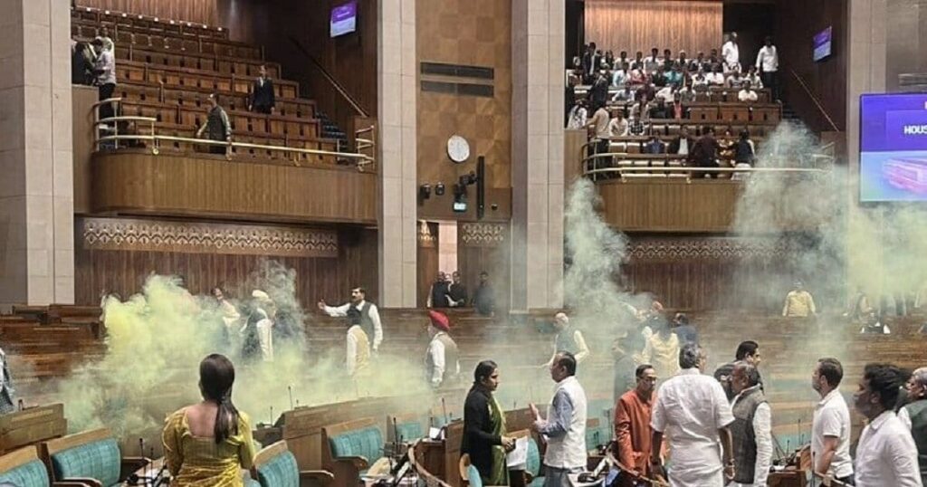 नई दिल्ली. लोकसभा में बुधवार को सुरक्षा व्यवस्था में एक बड़ी चूक देखने को मिली, जिससे संसद के अंदर अराजकता फैल गई. दो लोग स्मोक क्रैकर लेकर दर्शक दीर्घा से लोकसभा में कूद गए. जिससे संसद के सदस्यों में भगदड़ जैसी हालत पैदा हो गई और ज्यादातर लोग दहशत में आ गए. इसके बाद सदन को तुरंत स्थगित कर दिया गया. दिल्ली पुलिस ने अब तक लोकसभा में सुरक्षा उल्लंघन में शामिल छह आरोपियों में से पांच को गिरफ्तार कर लिया है. पुलिस ने कहा कि सभी छह एक-दूसरे को जानते थे और गुरुग्राम में एक घर में रह रहे थे. इस बीच विपक्ष ने भाजपा सांसद प्रताप सिम्हा पर हमला किया, जिनके जरिये सत्र के दौरान सदन में घुसपैठ करने वाले दो व्यक्तियों को पास जारी किए गए थे. कांग्रेस ने संसद की सुरक्षा के उल्लंघन पर केंद्रीय गृह मंत्री अमित शाह से जवाब और आधिकारिक बयान देने की मांग की है. संसद में हुई सुरक्षा चूक के बारे में 10 बड़े अपडेट ये हैं: