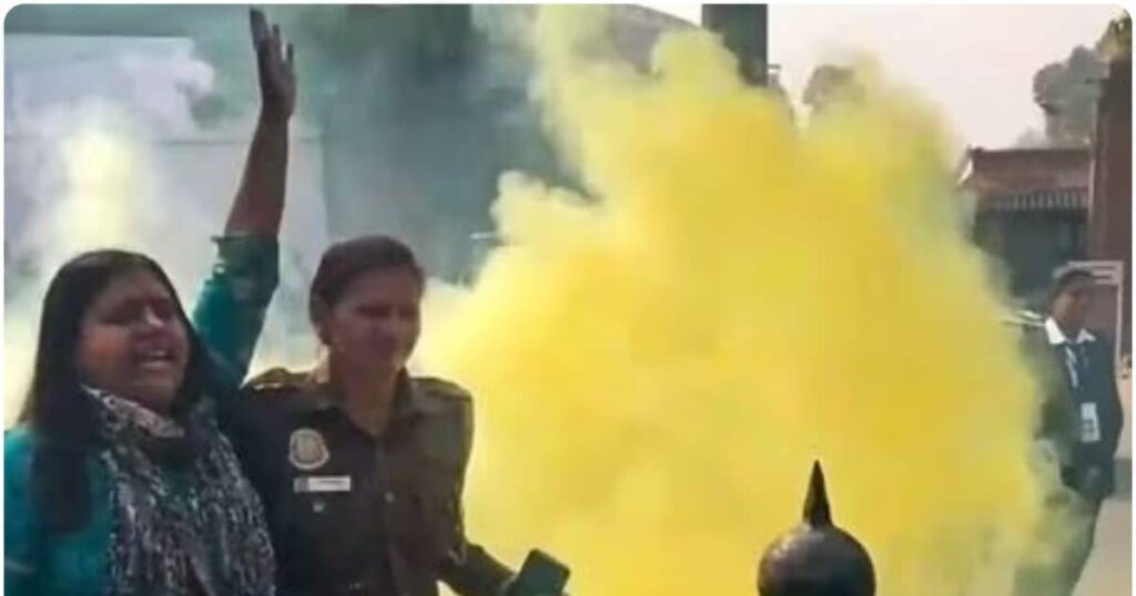 संसद पर 2001 में किए गए आतंकी हमले की बरसी के दिन बुधवार को, सुरक्षा में सेंधमारी की बड़ी घटना उस वक्त सामने आई जब लोकसभा की कार्यवाही के दौरान दर्शक दीर्घा से दो लोग सदन के भीतर कूद गए और ‘केन’ के जरिये पीले रंग का धुआं फैला दिया. घटना के तत्काल बाद दोनों को पकड़ लिया गया. इस घटना के कुछ देर बाद ही पीले और लाल रंग का धुआं छोड़ने वाली ‘केन’ लेकर संसद भवन के बाहर प्रदर्शन करने वाले एक पुरुष और एक महिला को गिरफ्तार किया गया.